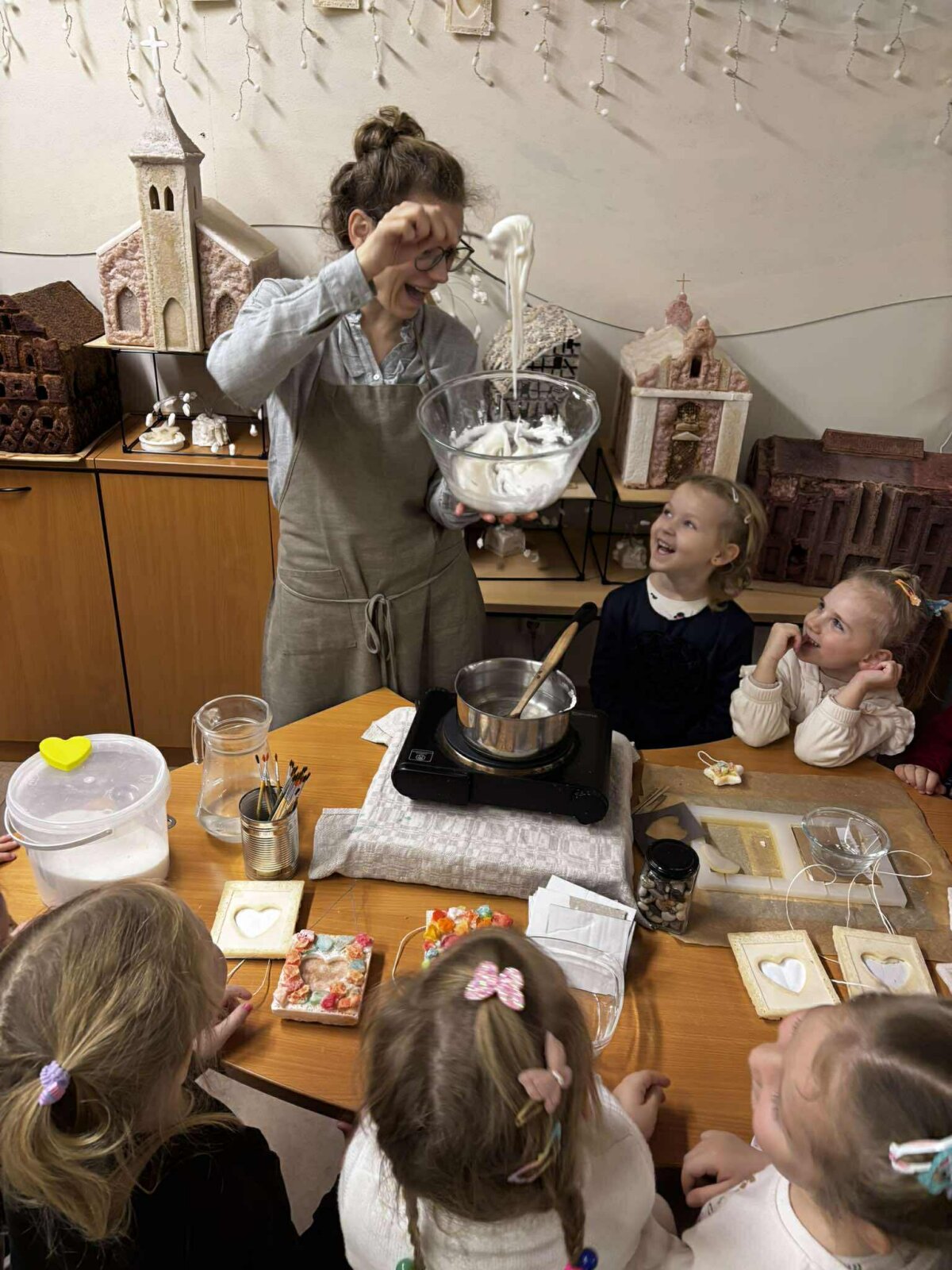 Ši edukacija - tai priminimas, kad kartais stebuklui nereikia išmanių ar blizgančių žaislų , tiesiog švelniai kvepiančio cukraus, šypsenų ir bendros kūrybos.