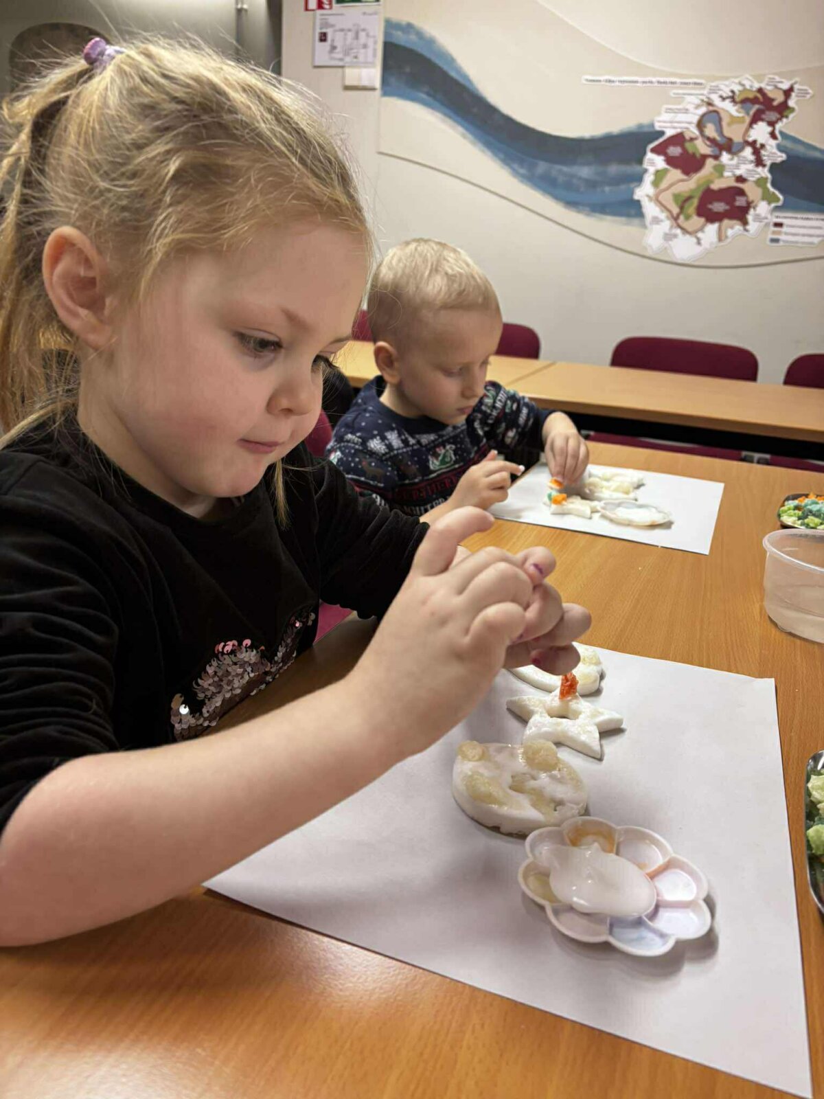 „Beržo” grupės mokiniai 2025 m. gruodžio 3 d. vyko į Birštono turizmo informacijos centrą, susipažino su cukraus liejimo technologija ir gamino cukrinius kalėdinius eglutės žaisliukus. Vos tik įžengus į edukacinę erdvę, mažuosius pasitiko saldžiai kvepianti atmosfera: cukriniai nevalgomi statiniai, ant stalų išdėlioti balti išlieti žaisliukai, o prie jų traškūs, spalvoti pabarstukai... Vaikai nedelsdami ėmėsi darbo - mažomis rankytėmis klijavo papuošimus, kūrė savo unikalius darbelius.
