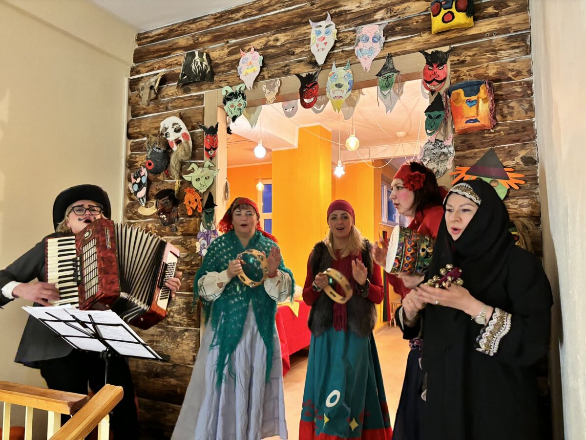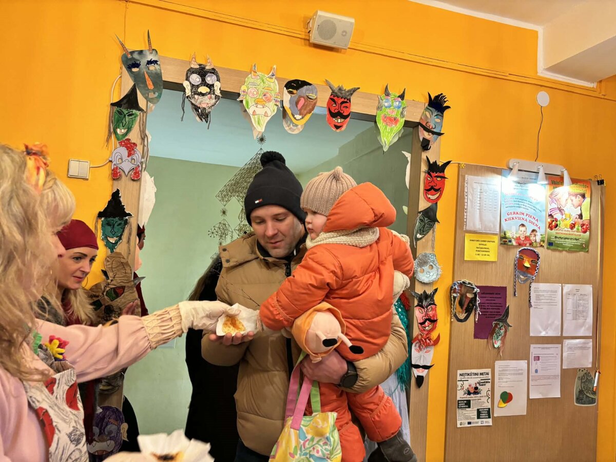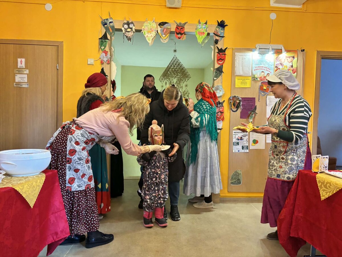 Štai su tokia trankia daina „Volungėlės“ skyriaus mokytojos ir jų padėjėjos, Užgavėnių rytą virtusios šventės personažais, pasitiko ateinančius vaikučius ir juos atlydėjusius tėvelius. Grojant trankiai muzikai, dar net saulelei nepatekėjus, sukosi dailios gaspadinės, it bitutės avily, kepdamos skanius blynus, kuriais su gardžia uogiene vaišino visus ateinančius.